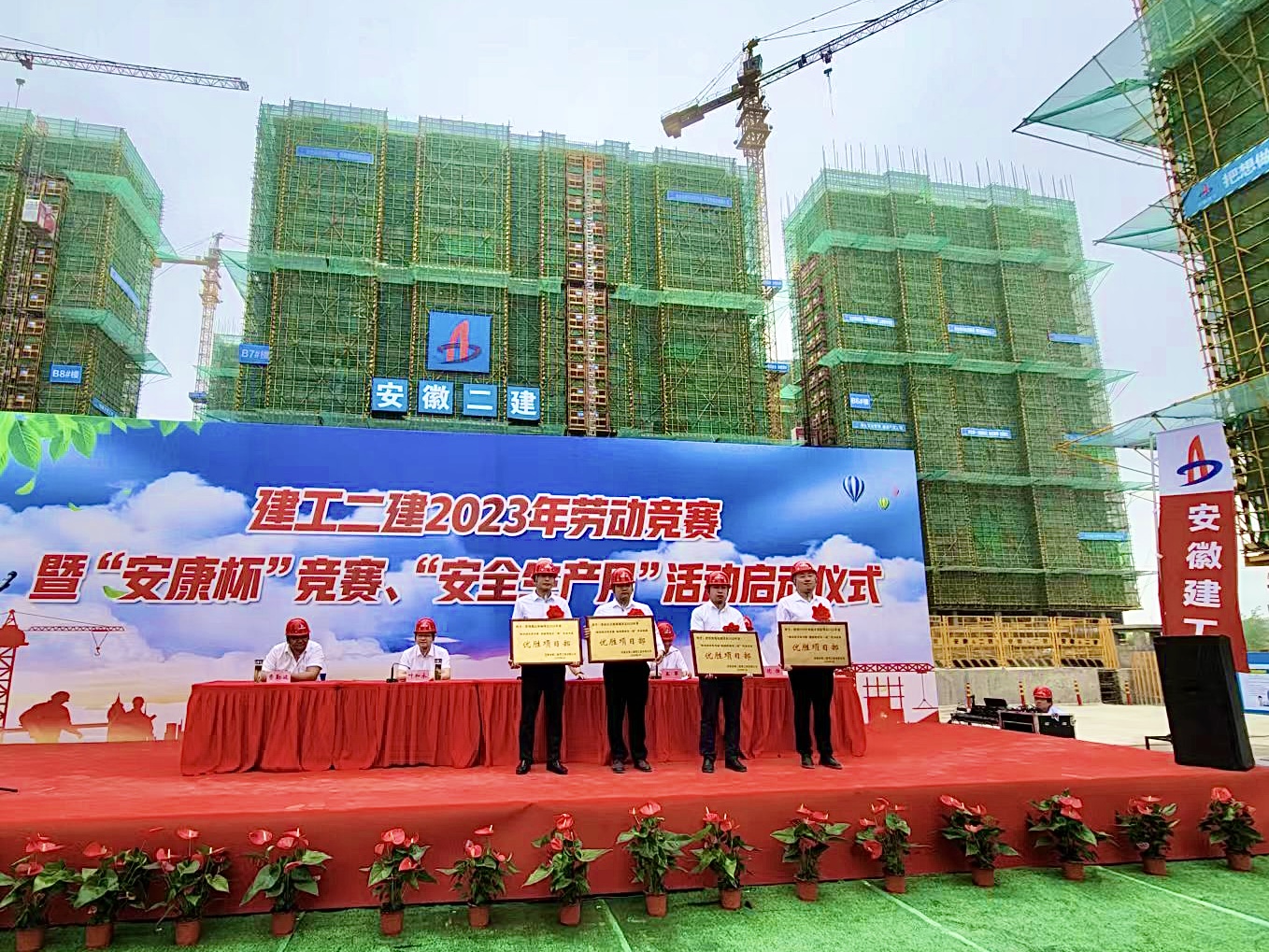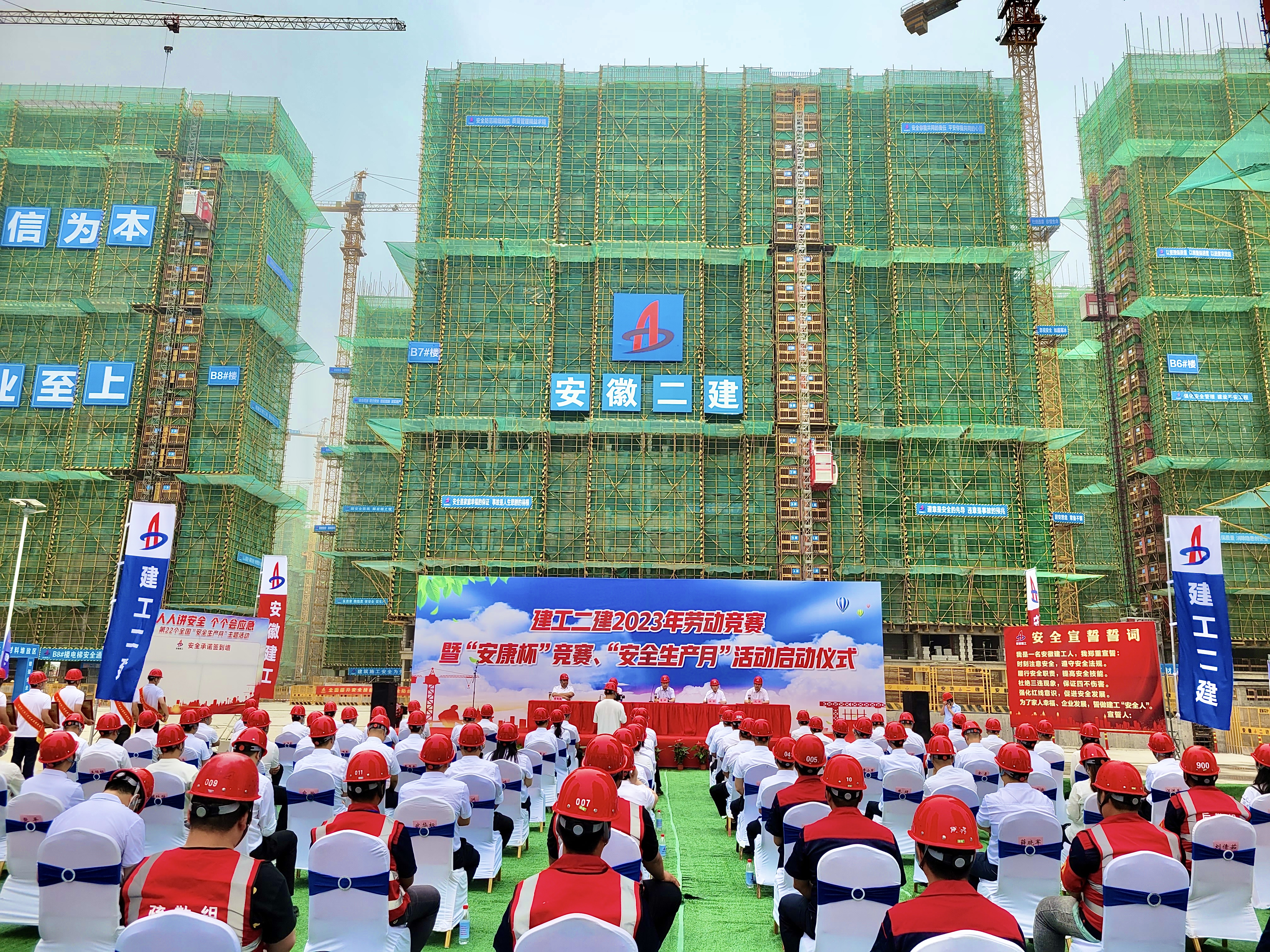 5月30日上午,建工二建在蕪湖中丞濱江時代項目現(xiàn)場舉行2023年勞動競賽暨“安康杯”競賽、“安全生產(chǎn)月”活動啟動儀式。公司領導班子成員,勞動競賽委員會成員,所屬各單位主要領導,分管安全、生產(chǎn)及質(zhì)量副經(jīng)理,工會(副)主席,工管科、安全科科長,公司工會、工程管理部、安全管理部、技術質(zhì)量部相關人員,受表彰先進集體和個人代表等共百余人參加本次活動,公司黨委副書記、工會主席王軍主持啟動儀式。