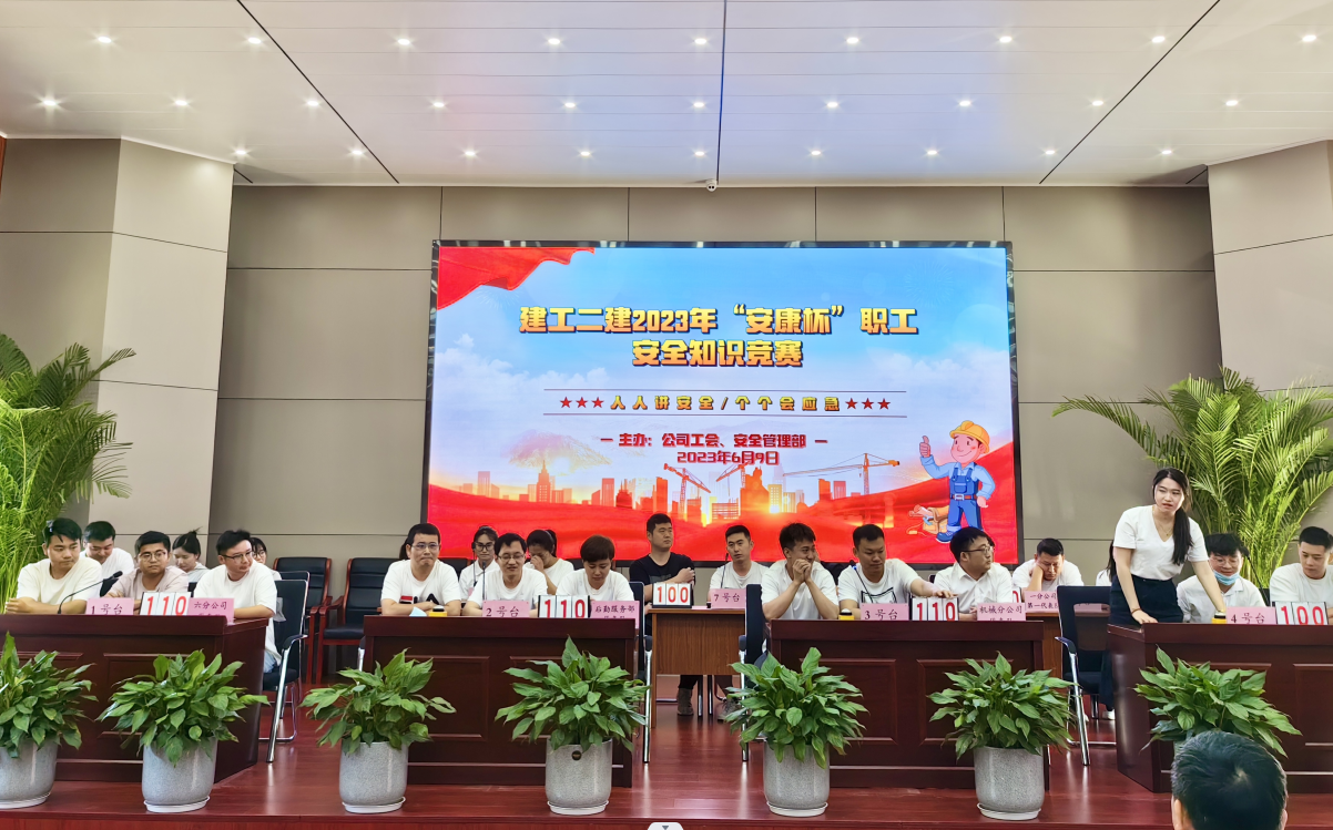 今年六月是第22個全國“安全生產月”,主題為“人人講安全,個個會應急”。6月9日上午,公司工會牽頭,與安全管理部聯合舉辦了建工二建2023年“安康杯”職工安全生產知識競賽活動。安全知識競賽的開展,旨在通過以賽促學、以學促用,大力弘揚“生命至上、安全為天”的安全理念,加強安全知識宣傳教育,切實增強廣大職工安全生產意識和安全管理知識水平。公司黨委副書記、工會主席王軍,副總經理代鵬飛出席活動。