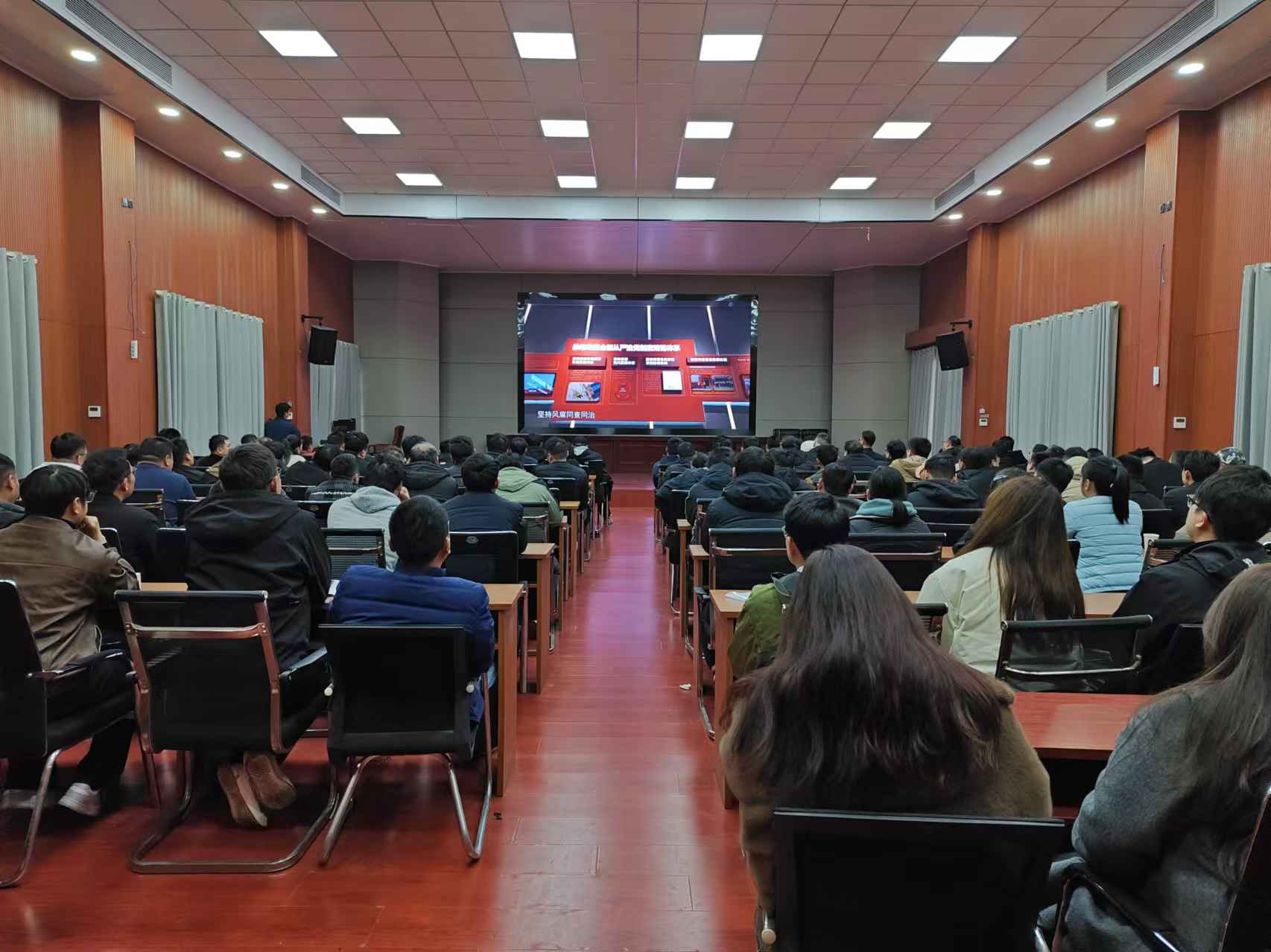 活動中,全體職工集中觀看了警示教育片《碩鼠之殤》。通過發(fā)生在身邊真實鮮活的案例,深刻揭示了腐敗行為的嚴(yán)重危害,為廣大職工干部敲響了廉潔從業(yè)的警鐘,警示大家時刻保持清醒頭腦,做到嚴(yán)于律己、慎獨慎微,自覺在心中筑牢拒腐防變的思想防線。