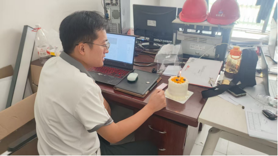 我叫趙斌斌,是一名項目管理人員,在滾滾混凝土澆筑的“洪流”中,時間似乎是以方量來計量,十一年來澆筑的混凝土歷歷在目,但家庭的陪伴已然沒有過多印象。外地工作常常忙的記不得日子,每到生日的時候,正值七夕前夕,但家屬不管多忙,都會請假帶著蛋糕出現在項目給我驚喜。即使疫情期間被封控在宿舍內,那天也能看到她“派送物資”的身影。工地地點年年不同,不變的是陪伴在身邊的人,以工地為家的日子在每年的這份期許與陪伴里有了更加堅定的信念。