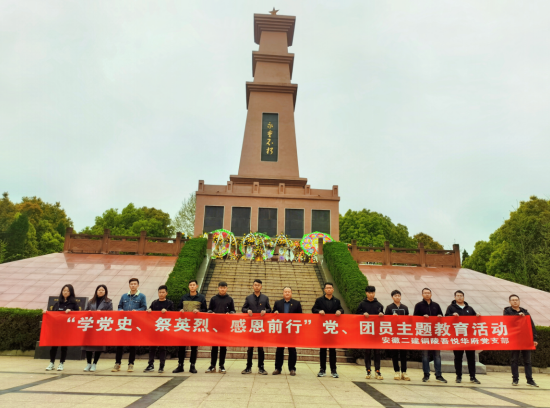 4月2日,三分公司銅陵吾悅華府項目黨支部開展“學黨史、祭英烈、感恩前行”主題活動。